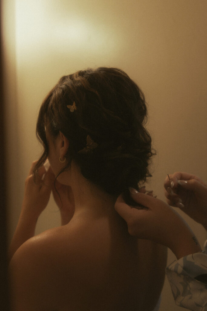 Once it became time for the wedding that Tuesday, the air was tranquil and refreshed. Each person aided in getting the space, and themselves, ready for the celebration to come. Lindsey’s sister helped with makeup, her best friend with her hair, and her mom with the dress. Lawrence’s friends and father steamed the garments and filled the rooms with laughter. There were no nerves, as there was no production. The invitation was to just be.
